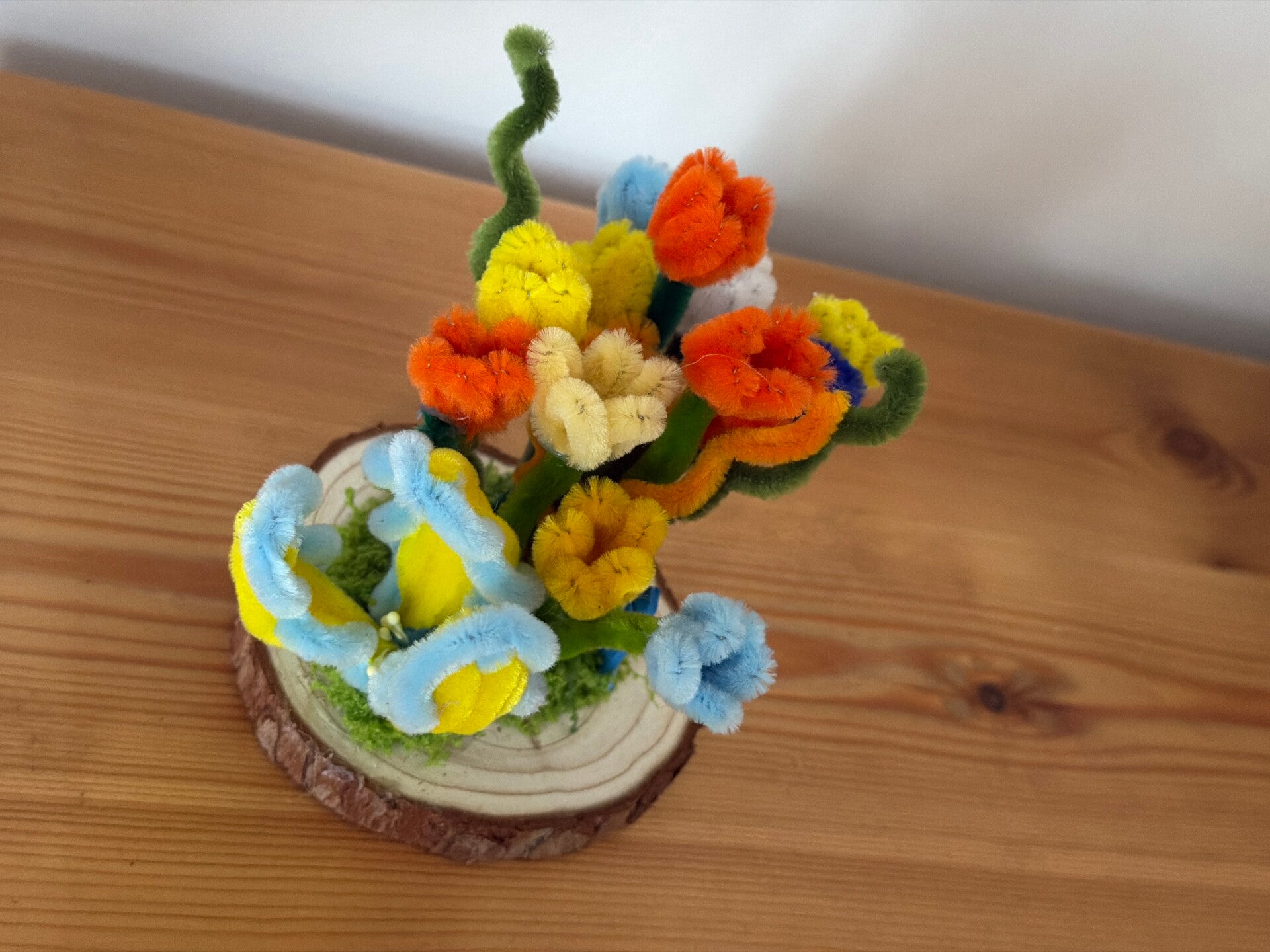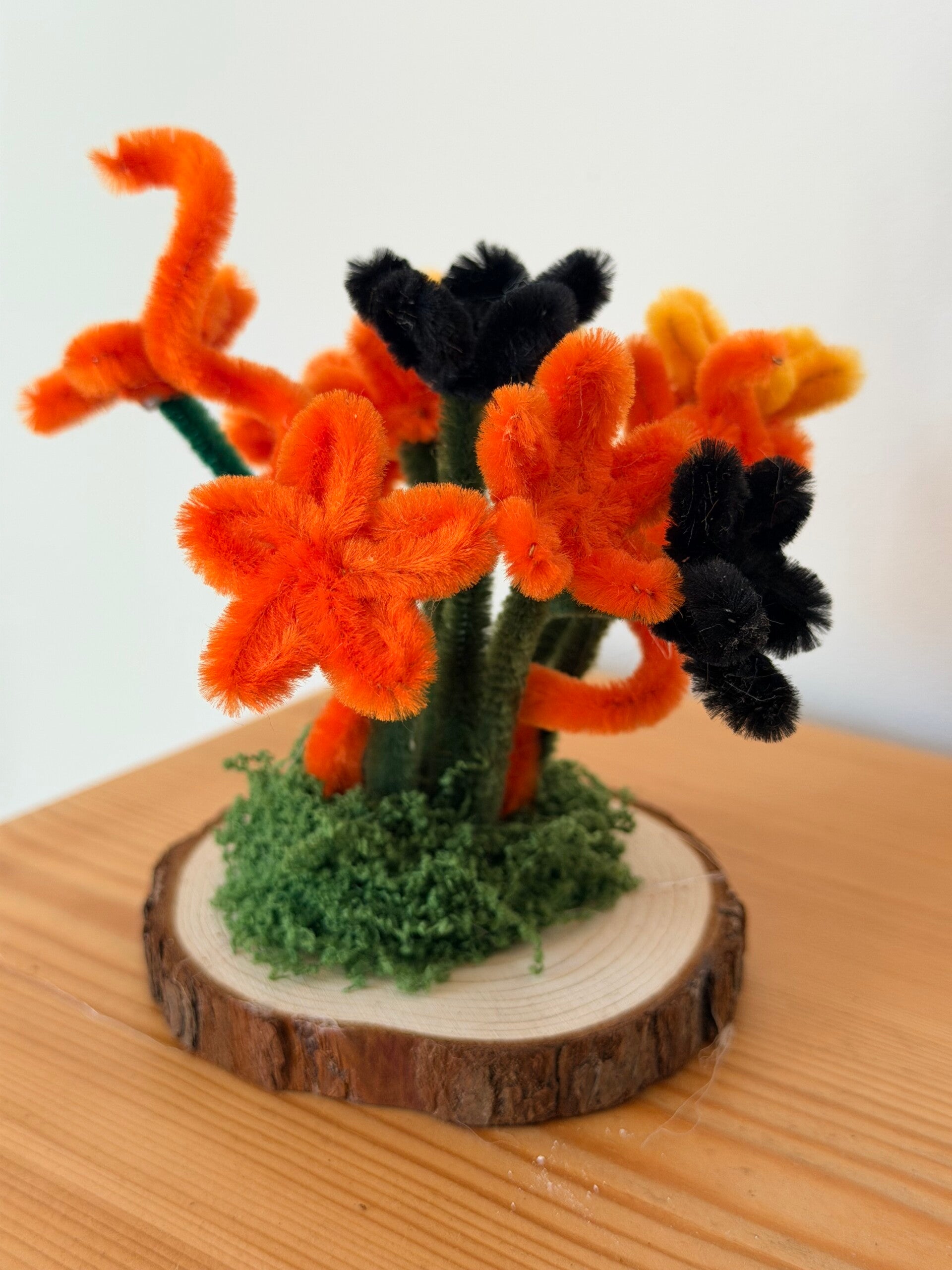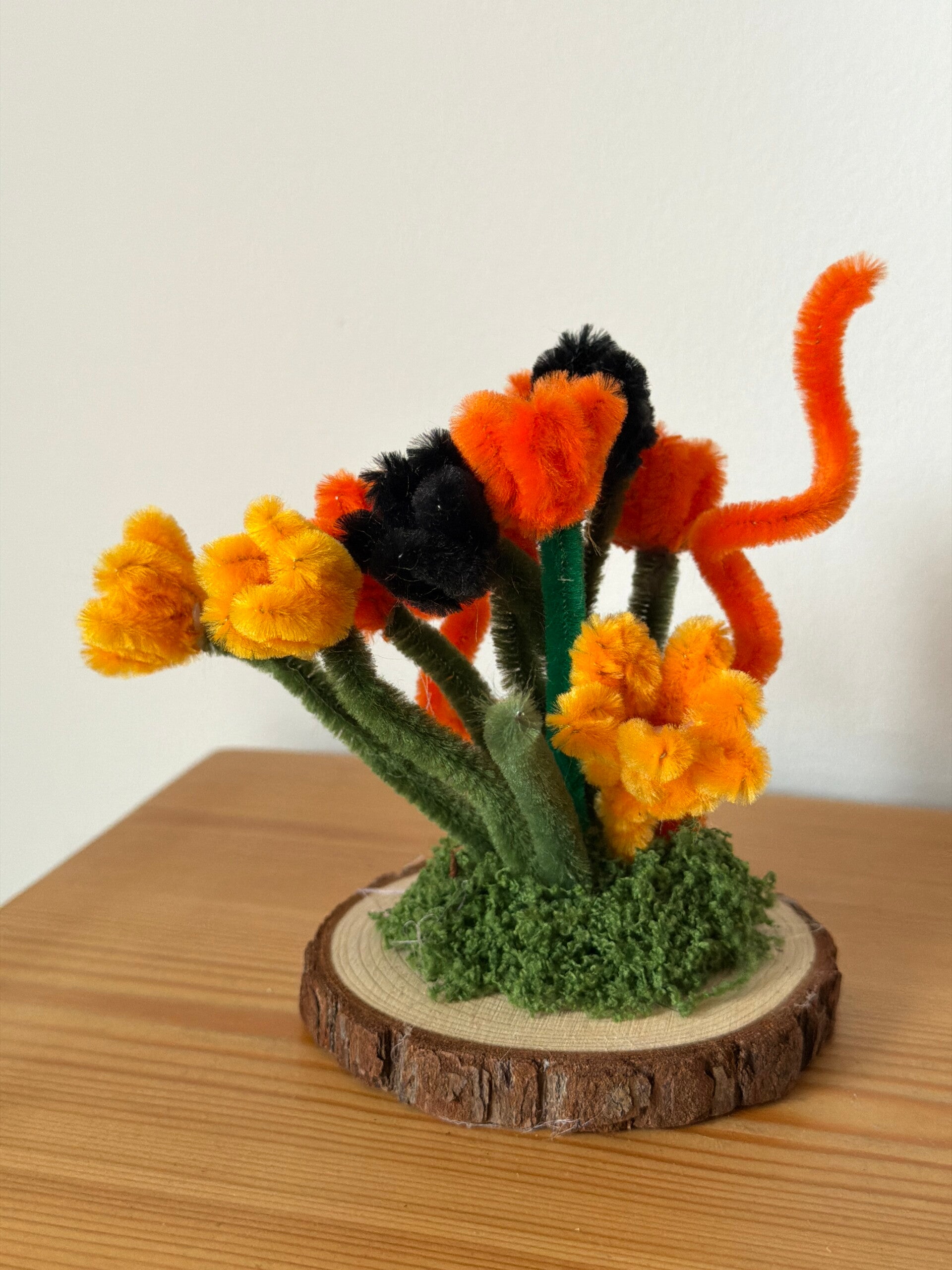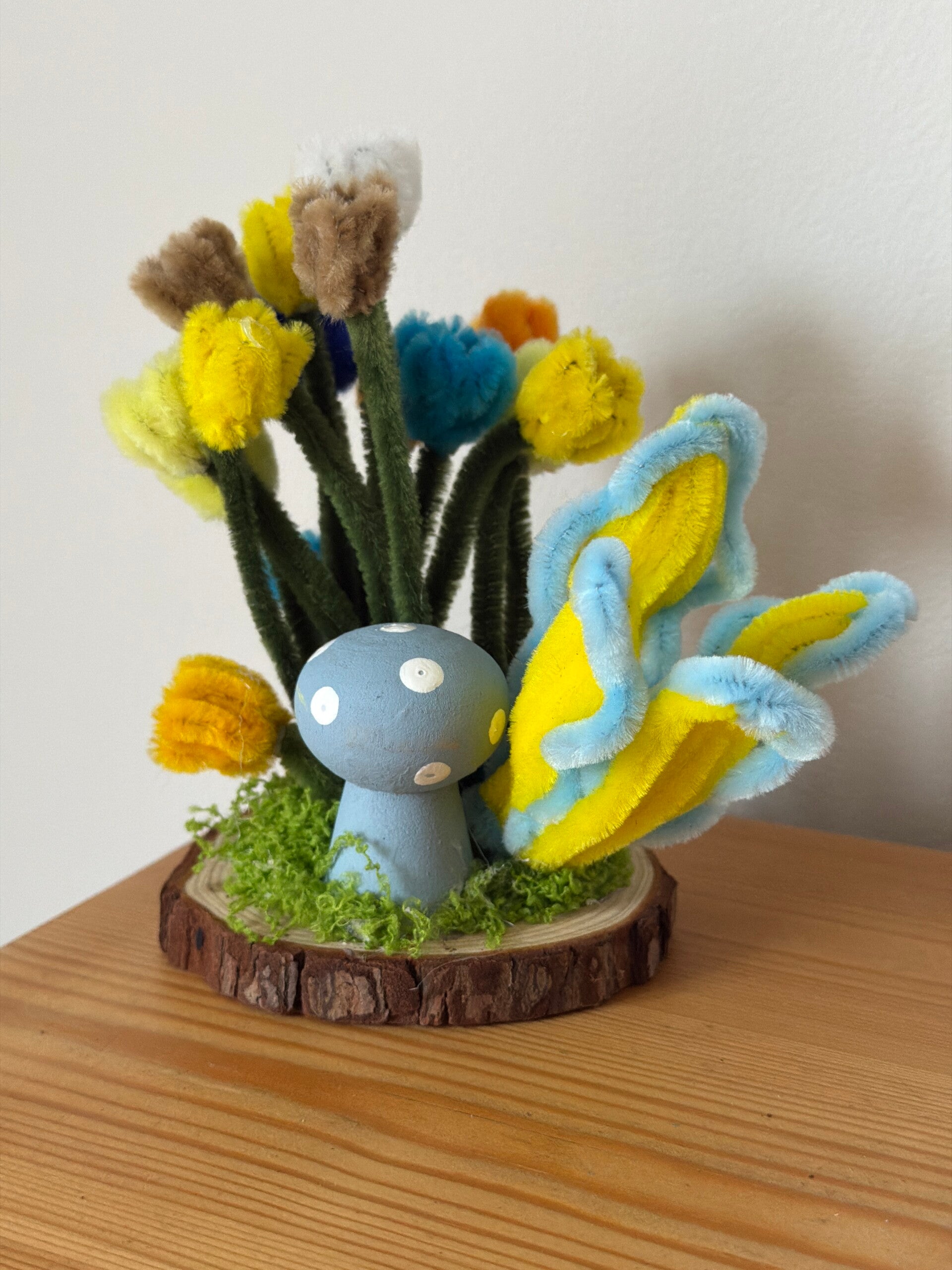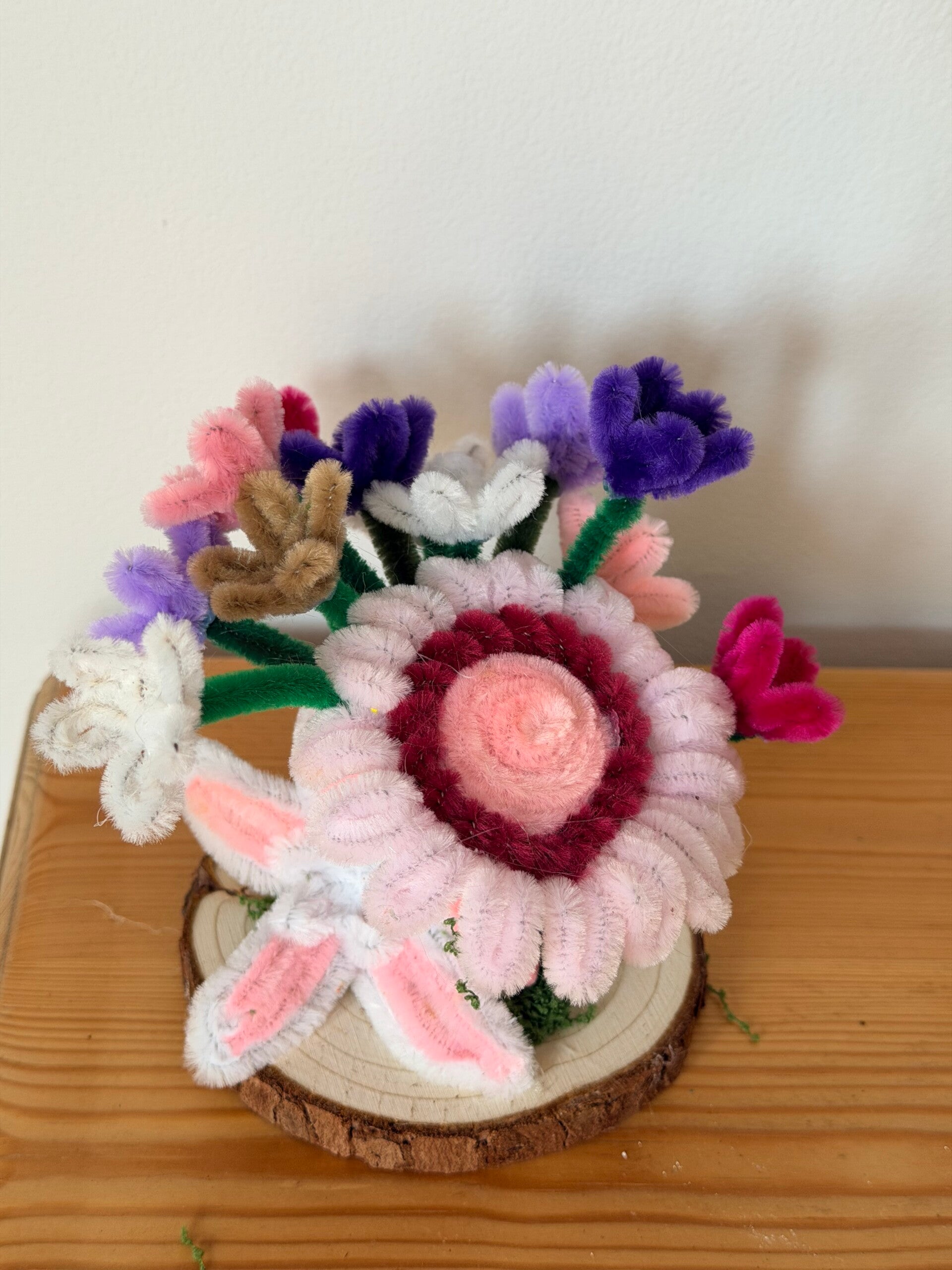 This collection I use sliced cut logs to create a woodland style scene, adding small pipe cleaner flowers.